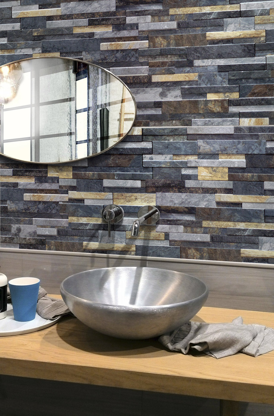 QUARZOs dreidimensionales Feinsteinzeug mit Quarzitsteineffekt kann unterschiedliche Tiefeneindrücke erzeugen und die Wände mit einem angenehmen natürlichen Effekt versehen. Anregung und Zweckmäßigkeit für Verkleidungen von Außenfassaden, Veranden, Pool- und Wellnessbereichen, originell auch für Wohn- oder Badezimmer. Das Feinsteinzeug von Quarzo passt sich auf vielseitige Weise jedem Stil, Bedarf und Verwendungszweck an. Die Quarzo Kollektion ist im 16×40-Interlocking-Format (mit einer Dicke von 8 bis 12 mm) erhältlich und wird in 3 warmen Farben Gold, Clay, Red und 3 kalten Farben Iron, Steel, Grey angeboten.